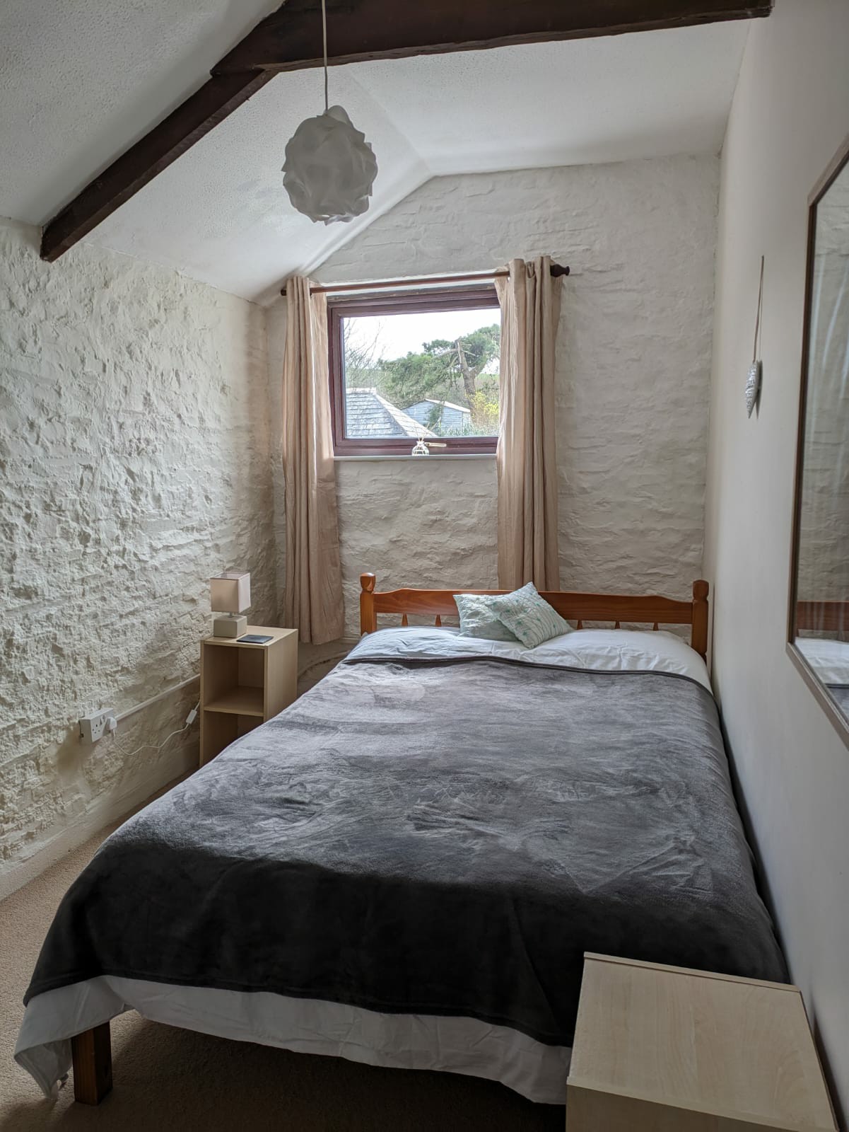 There are three bedrooms at The Granary, all on the first floor. One double bedroom looks out onto the front of the property and has a sea view on clear days. The other double bedroom and the bedroom with bunk beds look out onto the rear of the property.